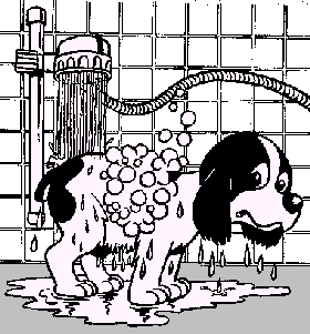 | Wen Uw hond op jonge leeftijd aan baden en afspoelen onder de douche, zodat hij er later geen angst voor heeft. Droog hem direct na het baden zorgvuldig af, houdt hem in een warm en tochtvrij vertrek, tot de hond droog is. Afkoeling van iedere hond - in het bijzonder een pup - vatbaar maken voor ziekte. Langharige honden moeten geborsteld worden voordat ze gewassen worden zodat het verzorgen van de vacht na het baden makkelijker is. Als Uw hond laat wennen aan het geluid van de fohn, dan kunt U Uw hond het beste droog fohnen. |