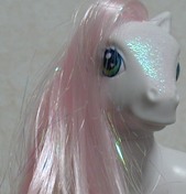髪は薄いピンク毛に、キラキラ毛入りで、Pinkiy Pieに近い感じ?