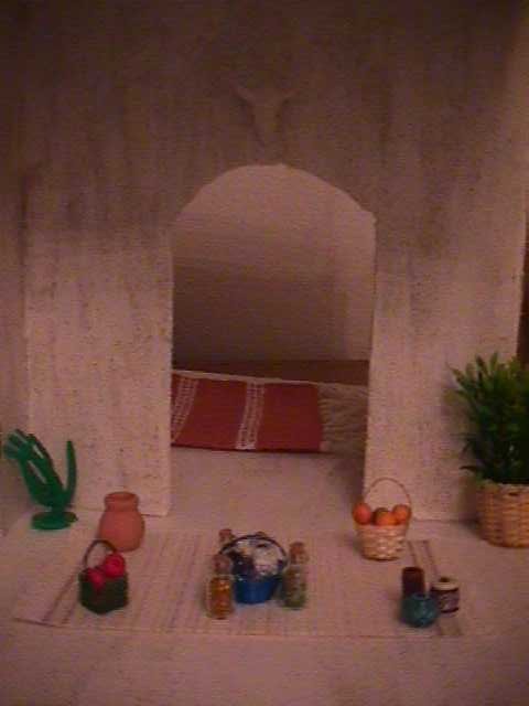 and potions. All upon her hand woven blanket. Be sure to notice the cow's skull she