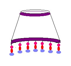 floss, or wire. Make enough of these strings to cover all around lampshade.