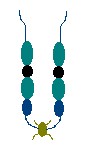 - Beads -- mostly blue, turquoise, black, or even gold beads.