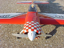 The model was covered with Econokote. It follows Patty Wagstaff's 1999 color scheme. I duplicated the checker scheme on the rudder by cutting 1/2" squares of Econokote and applying them onto a white background.