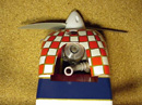 The cowl and landing gear were painted with Lustrecote to match. The red checker was duplicated by cutting 1/2" squares of Scotch Magic tape.