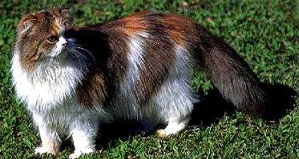 Nacionalidad: Escocía Categoría : Pelo Semi Largo Origen: La raza tiene su origen en una gatita de orejas caídas de una camada de gatos con orejas normales nacidos en una granja de Escocia, a partir de la cual se desarrolló el Fold Escocés de Pelo Corto y proviene del mismo linaje que estos últimos con una figura parecida pero, desde luego, con pelaje largo. Historia : La Asociación Felina Internacional (AFI) reconoció al Fold Escocés de Pelo Largo, pero es el único organismo de registro que lo acepta, a pesar de que ha sido criado tanto en Bretaña como en Estados Unidos Descendencia: Proce de cruces realizados entre el Scottish Fold y el Exótico, si bien el pelo largo es un gen ya portado por los Scottish. Carácter: Aspecto Físico: