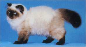 patas y cara. Ambiente: Se adapta bien a vivir en un piso. Cuidados: Los cuidados son un peinado cada dos días, para eliminar pelos muertos y evitar nudos, y un baño cada mes. Defectos: Cabeza larga y triangular como el Siamés, osamenta frágil, ojos de color distinto al azul, estravismo, pelo corto, manchas distintas a las descritas |