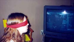 She can't see the television.