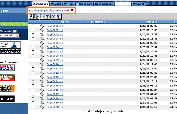この画面になったら上のほうにある(オレンジ)Enable multiple file up/downloads