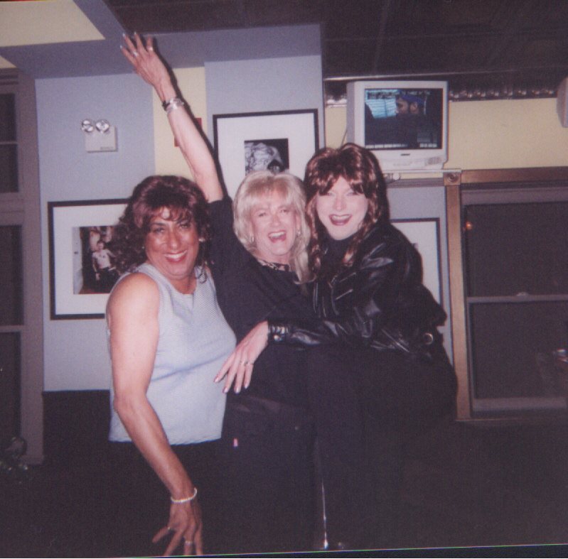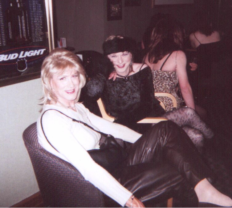 | This is Yvon Steele, Junie and me at "Vixen" in Provincetown, 2004...its not necessarily a wild place, but we do seem to get a bit nutty there. Just something about being a girl 'round-the-clock, in a town where TGs are just part of the scenery, and being with great friends...how can you not let loose a little? I do need to work on my party endurance, tho...we were out late on Friday, and I was too pooped to pop Saturday night..but I gave it my best shot! |