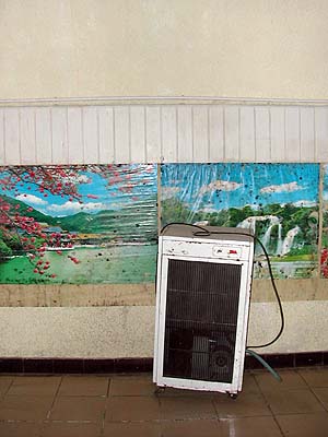 The first time I went the hallways were covered in mold. The second time I went they had put up new posters to cover the mold. To the right is one of the figures you can see during the ride.