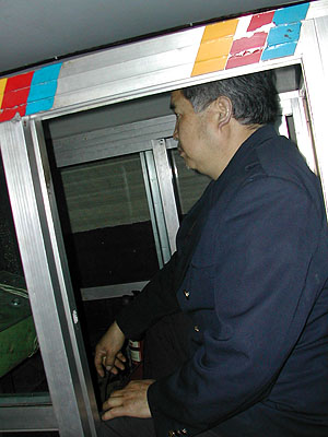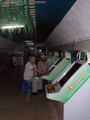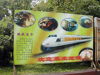 The infamous train in the peoples park. To the left is the ad, below is the actual train and the conductor of the train.