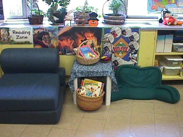| Our classroom library is located next to the reading center. The library is filled with interesting reading material. |