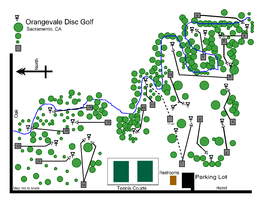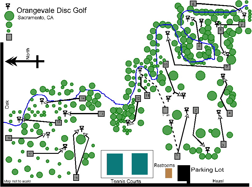 Orangevale Community Park Disc Golf Maps: Regular JPG -- Regular GIF -- Medium JPG -- Small JPG