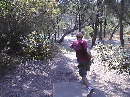 Then, it was off to the Napa course. After the hike to the first tee, the group realized that this day's courses would be much different from the flat courses they were used to. The worries of a runaway disc grew significantly and the profanities of Tim were directed at a few discs, although many were heading for the bottom of a hill and probably didn't hear him. Mark dazzled everyone with his dead-eye putting and ended up bringing home the most skins from the team play. Hopefully the course will be played again since they couldn't play all 18 holes due to time.