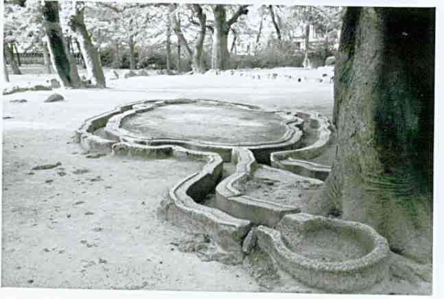 | The only remains of a Silla summer palace, this granite watercourse called Posokjong was used by the royalty to play poetry games. Cups of wine were floated down the winding course to people who were to write a poem on a particular subject before the wine reached where they were sitting. If they couln't finish the poem before the cup arrived, then they had to drink. After a few cups, the poems were probably more difficult (or more easy) to write. |