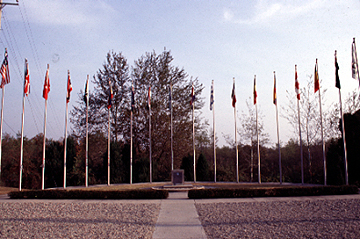 The 16 flags of the nations that fought on the side of the Republic of Korea during the war. |