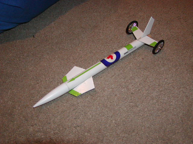 This is modified from the Estes Viking kit, designed to run on A,B, or C engines