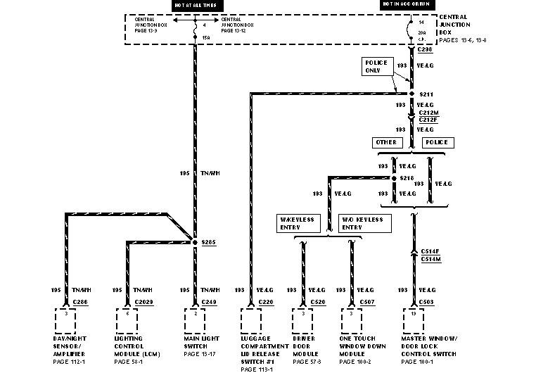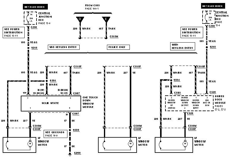 Note #2: Police and Civilian models use a different color code scheme for one of the drivers window switch wires. Police models will have a yellow wire and civilian models will have a tan/black wire.