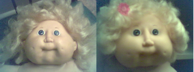 Une brosse a dent, de la pâte a dent! Pour les taches plus tenaces, on peut prendre du dissolvant pour vernis a ongle. (Ne pas utiliser sur les poupées avec un teint foncé!) Il ne faut pas toucher aux parties peintes comme les yeux, les sourcils ou points de rousseurs car le dissolvant ne fait pas la différence avec les taches! **note** J’ai nettoyé une poupée particulièrement sale avec du dissolvant pour vernis a ongle, et sa figure est devenue une peu rugueuse, un peu comme les ongles quand on ôte le vernis... donc a utiliser en cas de besoin seulement! J’ai lu a quelque part que l’on pouvait nettoyer la figure aussi avec un produit nommé « orange glo ». Je ne garantis rien par contre a savoir si les yeux vont rester intacts! Merveille! Les effaceurs magiques de Mr. Net... Ca efface les taches, l'encre, presque tout! Et les yeux, sourcils et points de rousseurs restent intacts... Hourra!!!