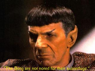 “I’m not convinced, let’s not jump to any conclusions gentlemen,” ordered Captain Picard, “and infinitesimal though our chances may be, Mr Data, should the circumstances warrant it we will engage the Borg. How long until we reach Earth?” “Twenty minutes.” The helmsman, Lieutenant Hawke, replied “Not good enough. Picard to Engineering; I want more power Mr LaForge!” “No can-do, Captain,” the Chief Engineer’s voice came back to him, “if I try to push any more out of her we’ll blow her circuits!” “Well, blow her circuits then!” The Captain snarled, his hands gripping the armrests of the central chair, body straining forward as though willing his vessel to greater speed. Spock raised his eyebrow speculatively. This was the first time the ambassador had observed within the current captain of Starfleet’s flagship the same fire that had so characterised a former holder of that position with whom he had had many adventures. |