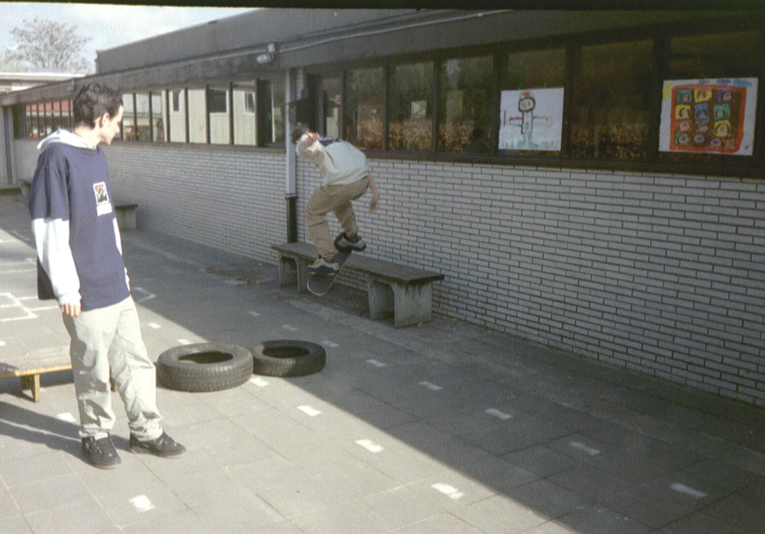 | An old picture! About two years ago Sander wasn't a real John but a skatefreak! Here he is , skating outside our rehearsalroom... | |||||||