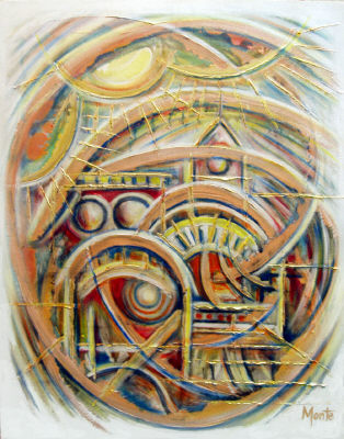 The broad lines encircle an emerging city. This new, spiritual life is bathed in a spiritual glow. A feeling of richness is achieved through the use of interference gold, orange and red. Size - 24x30