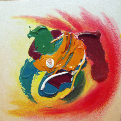 This smaller work focuses on the impasto shapes in the centre. The sweeping red and yellow colours symbolize the intensity of heat and emotion. Size - 12x12"