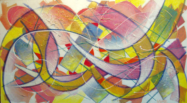 These fluid, wide forms move gracefully across the canvas. Free-flowing movement carries the spirit to new and exciting moments throughout the universe. Size - 33x60"