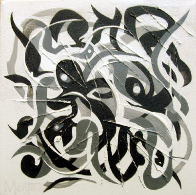 One finds an increasing number of curvilinear lines and shapes in this composition. New forms develop as the shapes interact with each other. Size - 12x12"