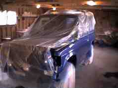 My 1989 V6 Raider, being painted by Chris Hansford, Trinity Bay, NF, June 2000. |