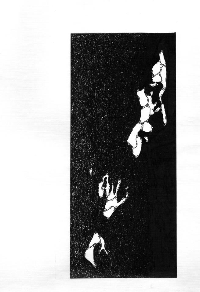 This is a picture of Joan Baez. It is derived from a photograph from her album "Play me Backwards". Many people tell me they don't see a women's face in this drawing. I've drawn her face from the side, a profile. The lower part of the drawing is her hand. You'll notice that another picture I made, one of the Dylan pictures, is similar in style and form to this picture. Joan Baez, though a great artist in her own right, will for me always be connected to Bob Dylan as both his former girlfriend and artistic partner. |