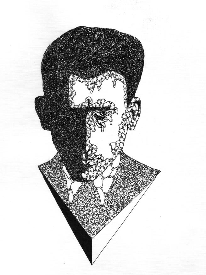 This is the first Kafka picture I made. I think I'll make a Leonard Cohen pictures just to show the difference. Anyway you can see here that most of the stuff I left out in the first drawing is shadow anyway. Less is more I guess.