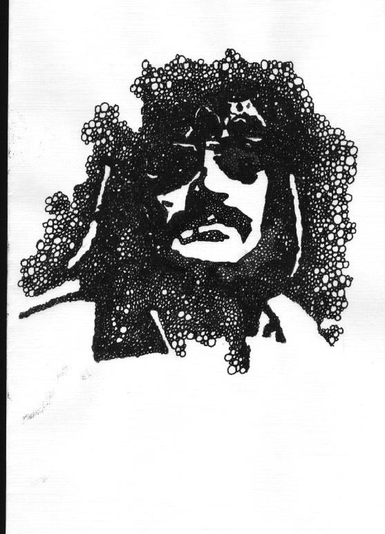 The Soft Machine was a band that used to tour with the Jimi Hendrix Experience. They're a Jazzband and make some interesting noises. I think this is the lead singer and when I drew this picture I probably could even remember his name. "Mike" it was I think. Oh well. |