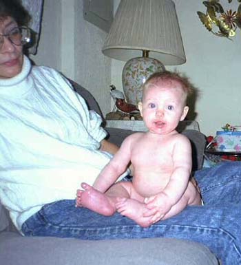 | Paige is very interested in all those beanies I collect for her! She loves to eat their hang tags off every chance she gets. Paige now likes the Teletubbies, Pooh and his friends, Mickey Mouse and his friends, Beatrix Potter's Peter Rabbit and friends. He favoritw of all is The Bear in the Big Blue House and all his friends: Tutter, Treelo, Ojo, and Luna the Moon!!! This is my nephew, Jessie Ray Turnage, drinking his last bottle in Houston, Texas in 1982. What a sweet, lovable little boy! This is that cute little Paige sitting on NanNan's lap without her clothes on! She had just completed sucking on her toes. I think she was surprised she could reach them! *SMILE* YOU'VE ENJOYED YOUR VISIT Please bookmark this page and come back soon! moonda50@hotmail.com | ||||||||||||||
