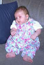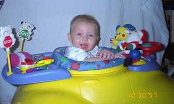 You can tell by the look on her face that this is my Mommy!!! I love her so much but she sure was mad at me for weighing 8 pounds and 8 ounces. *Smile* Blamed me for her hurting so much but see, she really thinks I was worth it. Besides, I took my time and only made her wait on me for, oh, let's see, almost thirteen hours. I was supposed to have been out of that nice, warm place eleven days earlier and would have stayed longer if it hadn't gotten so cramped in there... hummm... guess I just grew to much to fit anymore. Anyway, I wouldn't have come out at all if I knew that crazy old doctor and those mean nurses were going to slap me on my feet and hang me upside down when I came out. And did they ever keep it cold in that delivery room... I almost froze to death before they placed me in that blanket and under that nice light that hurt my eyes!!!