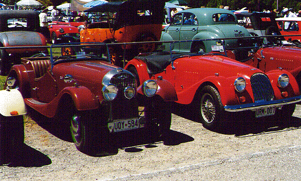THE FIRST GATHERING OF THE REGISTER, WAS THE `ALL BRITISH DAY' ON FEB 14 1999, AT URAIDLA OVAL, IN THE ADELAIDE HILLS. OF THE 660 + ENTRANTS THERE WERE 12 MORGANS 11 OF WHICH MADE UP THE `MORGAN REG OF SA' DISPLAY, THIS WOULD BE THE LARGEST GATHERING OF MOGS IN SA FOR MANY YEARS. THE DISPLAY CONSISTED OF A 1948 4/4, 1949 4/4 DHC, 1966 +4 DHC, 1953 +4, 1949 4/4, 1973 4/4, 1974 +8, 1975 4/4, 1937 4-4, 1951 +4, 1979 +8AND ENDED WITH A DRIVE THROUGH THE ADELAIDE HILLS BACK HOME.