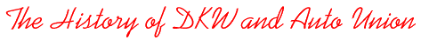 The two-stroke petrol engine came originally from the DKW works in 1919 as a toy model engine, however the popularity of this engine saw it evolve into a motorcycle engine. Once again the nomenclature DKW seemed right on the mark as this new engine became known as Das Kliene Wunder ( The small wonder ). In 1928 Das Kliene Wunder was used in the emerging marquee's first rear wheel driven car. Three years later the firm adopted front wheel drive, which it used ever since. DKW also retained the two-stroke engine, although with substantial development.