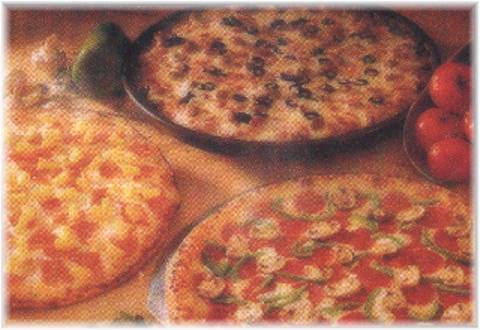 Toppings include: Pepperoni, Green Pepper, Onion Tomatoe, Banana Pepper, Fresh Garlic, Anchovies, Pineapples, Chilli Pepper, Beef, Chicken, Bacon, Calaloo, Green Olives, Calaloo, Mushrooms, Ackee, Mackerel (fish), Parmasan Cheese