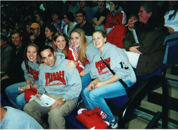 Selena Leer, Chelsea Logan, Nicole Witham, Kelsey Voetmann, and Bryan Howisey at the UW game. Diane Bedwell, Jen Mundt and Lynn Mundt are sitting a few rows behind. Who is the psycho guy sitting in front of Diane?