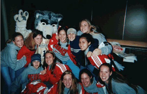 Here's the team posing with Harry the Husky. From left to right: Selena Leer, Jody Wicker, Diane Bedwell, Harry the Husky, Annie Everett, Kristie Mills, Nicole Witham, Beth Everett, Jen Mundt, Michelle Tiedmann, Chelsea Logan, Kelsey Voetmann. Where are the Giuffrida sisters???