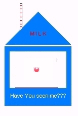 Hey this is my Milk Carton Page. It's supposed to be a game, and what you do is find out whatever thing that's in the milk carton below belongs to. Whatever is in the milk carton can be found on this web site. Email me your answer and i'll put up a new picture and give you credit for finding out first ASAP! GOOD LUCK!