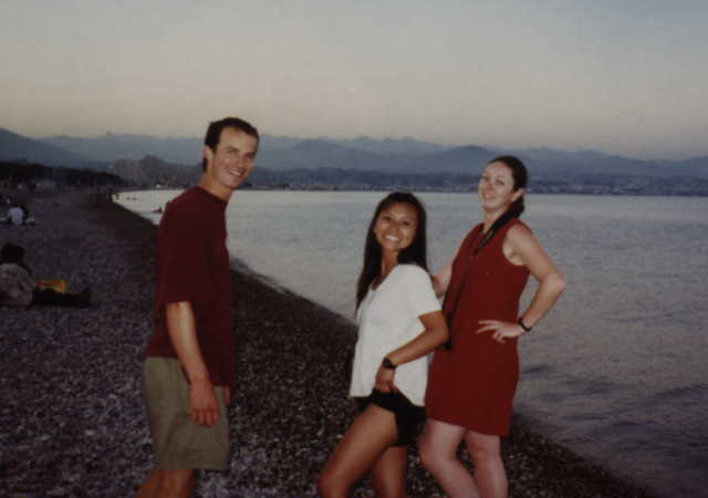 | Paul, Mai and Ashleigh and the Med. Sea in Spain. We were playing frisbee in the very rocky sands. |