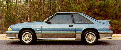 Exterior color: Bright Regatta Blue Metallic w/Titanium lower accent. 5.0L EFI High Output V-8. The older types would call the engine a 302. That works for me. Rated at 225 horsepower w/ 300 ft. lb. of torque it was awesome in its day. Nowadays 225 horsepower is chicken feed. Not in the Mustang though. Unless you want to cough up the big bucks for the Mustang Cobra you still aren't much better off, horsepower wise, than a car purchased ten years ago. But it is a snap to upgrade these cars with after market parts. Of course, I haven't done anything except remove the air intake silencer and put in a K&N Filtercharger. I have had ALL KIND of ideas over the years for modifications but because of money or good sense I haven't done any of them. Some day when this car is my second car I would like to at least replace the cheese grater tail lights and put in LX lights. Then get rid of those fake air scoops on the sides. Then put some lower gears in the rearend, and then paint the..........