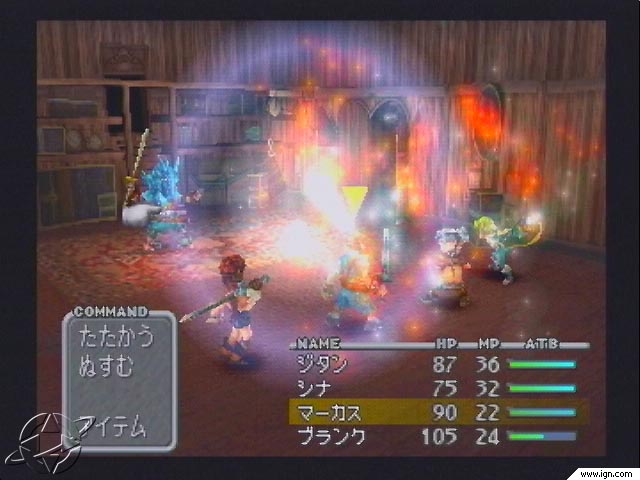 | Now to the best part of the game.. the story. This game takes a lighter, more humerous take at storytelling without being too corny or stupid. You'll get the idea in the beginning of the game. The game starts off as a bunch of bandits try to capture a princess during a play. During this process, you'll encounter a lot of funny moments with one of your main characters, Vivi, as he tries to sneak into the play since he has a fake ticket. Once the bandits capture the princess, they realize that she wants to get captured (sorry if I spoiled anything, but I read this in a lot of other reviews!). The game goes on from there, as you start to unravel the horrible horrible things that can happen when people get greedy for power. Each of your main characters are truly unique from one another, and it's fun watching them interact with each other. Besides a story based on power, this also has a lot to do with the story of 'friendship'. To all you fans of the past Final Fantasy's, be prepared for a little shock here and there as some parts of the game are actually borrowed from the earlier Final Fantasy games (I guess Square wanted this game to be special to all the hardcore Final Fantasy fans). I was in shock when I heard a few of the songs from FFVI playing. There are other memorable moments, but I won't spoil any of them. |