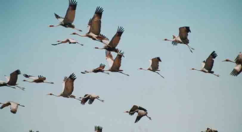 Brolgas in flight Queensland Magpie