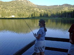 | We had a lot of fun fishing, even though only caught 1 fish (in 4 fishing trips). One of our trips was cut short when Aspen tried to catch a duck with a hook in its beak so that we could get the hook out. |