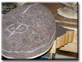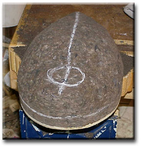 Rasp the breast area round and transition it into the shoulders area in a nice smooth fashion. Stop short of the head, leaving a thin shelf around the head. |