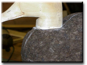 | The next step is to rasp a shallow trough out from the back of the head into the shelf. This trough tapers out from zero next to the head to about 3/4" at the edge. | ![]() |