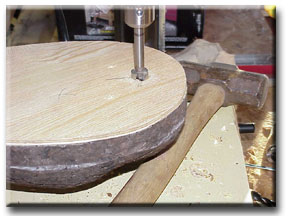 Time to attach the head, you can either glue it on now, or just temporarily attach it and glue it latter after the carving is finish. Using the appropriate size bit countersink deep enough so that the head and washer of your screw will be flush. |