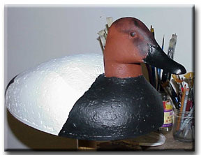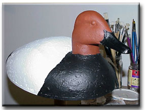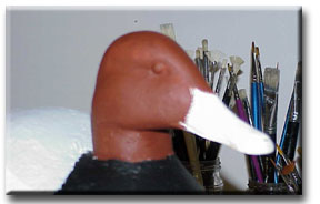 The body is done, and now for the head. Using "Burnt Sienna" paint the head minus the bill. This colour is a standard artist colour and available at any art store. You can also get it mixed at the paint store. |