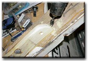 | Counter sink a couple of holes to attach and place a hole for the line to attach and glue it to your bird using your preferred waterproof glue. | ![]() |